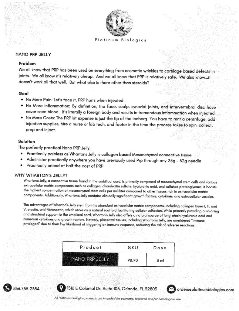 Wharton’s jelly is a gelatinous substance within the umbilical cord, largely made up of mucopolysaccharides (hyaluronic acid and chondroitin sulfate). It acts as a mucous connective tissue containing some fibroblasts and macrophages, and is derived from extra-embryonic mesoderm of the connecting stalk.